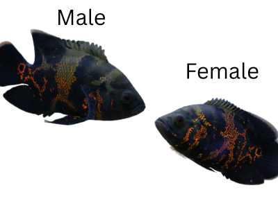 Black Oscars have a mostly dark or black body, sometimes with faint orange or red patterns. Their deep, dark color gives them a strong, bold, and powerful look, especially in large aquariums.
